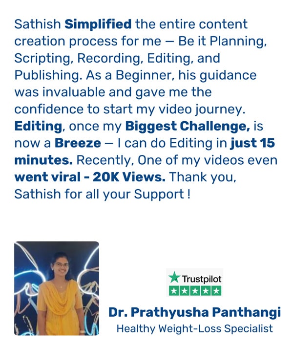 Using the proven video mastery system that helped 2583+ people to banish Self Doubt, fear of judgement, become camera confident & make income with video creation